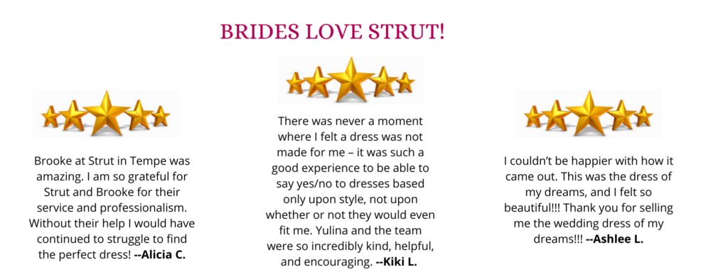 Our Black Friday Wedding Dress Sample Sale is November 28 – 30, 2025, in our Long Beach, California and Chandler, Arizona bridal shops. Appointments are highly recommended so we have a stylist and a fitting room for you! Please note that paid experience appointments are charged at the time of booking and are not refundable or transferable.