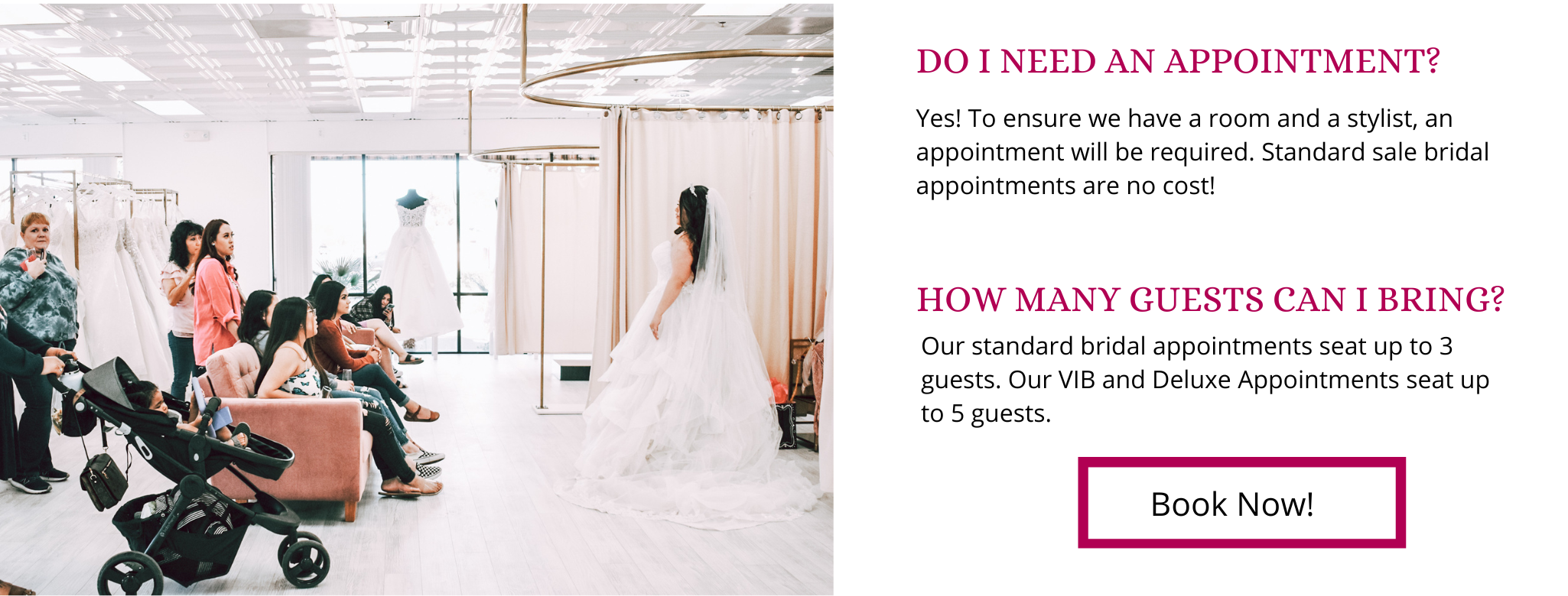 Our Black Friday Wedding Dress Sample Sale is November 28 – 30, 2025, in our Long Beach, California and Chandler, Arizona bridal shops. Appointments are highly recommended so we have a stylist and a fitting room for you! Please note that paid experience appointments are charged at the time of booking and are not refundable or transferable.