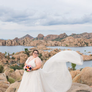 At the beginning of 2022, Ashlyn brought her family into our Arizona bridal shop for a Deluxe Bridal Wedding Dress Shopping Appointment. While she and her family enjoyed mimosas, sweets, and a full charcuterie board, the bride started her process of finding the perfect fitted wedding gown for her ranch wedding in the fall.