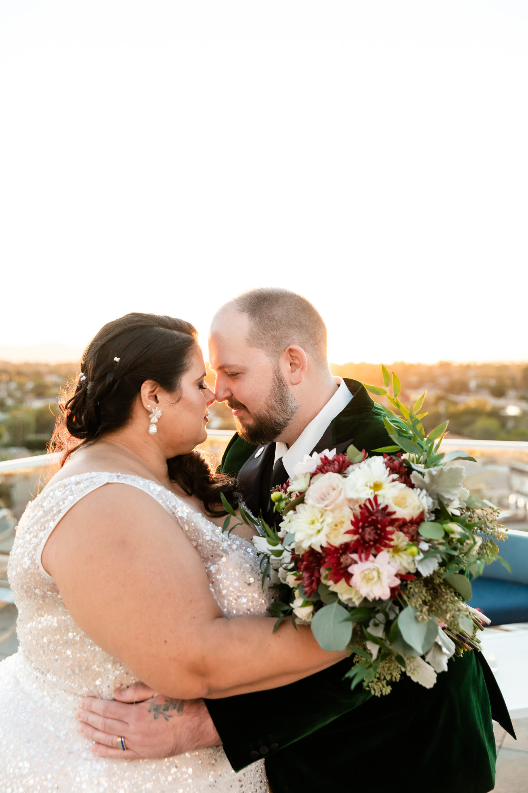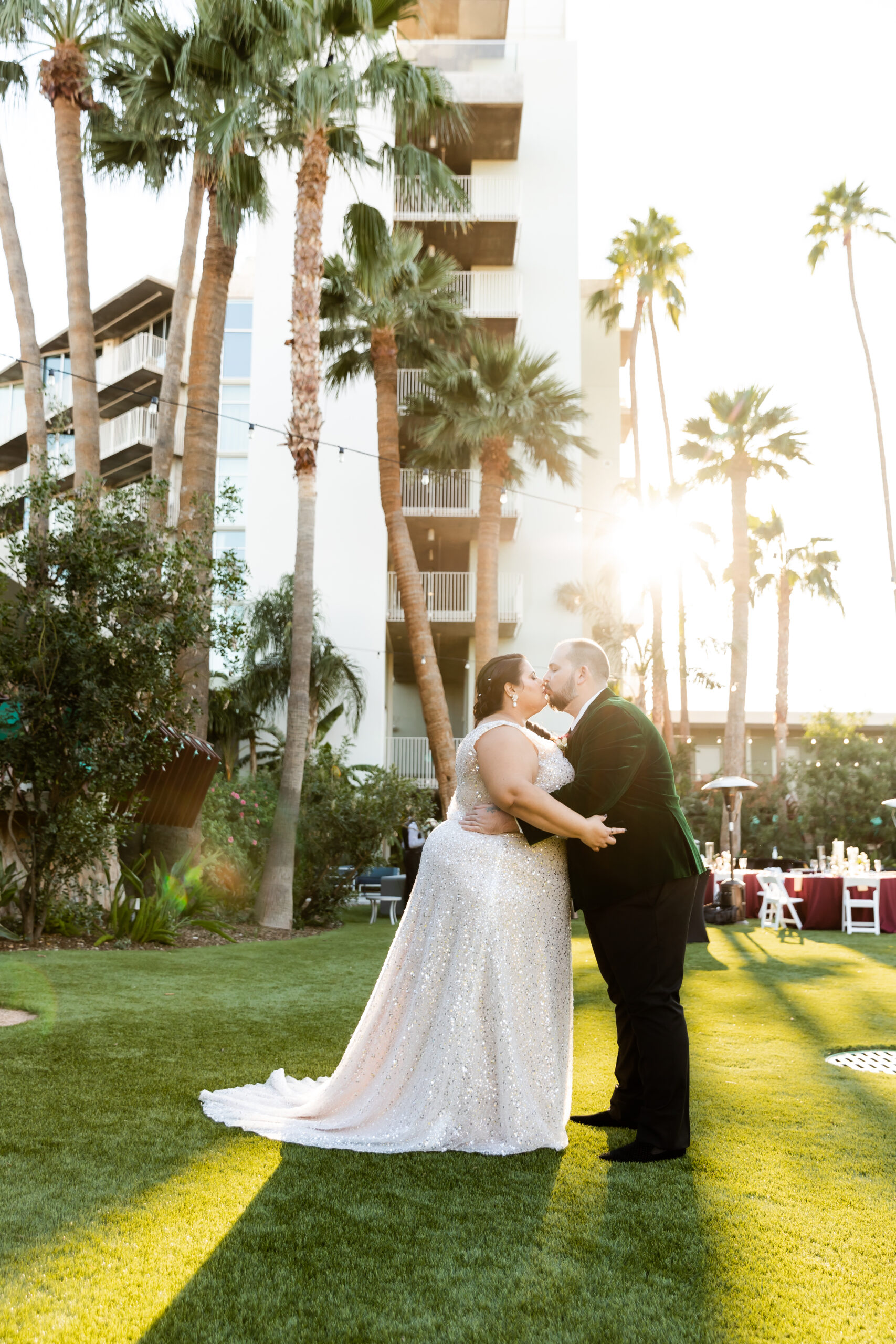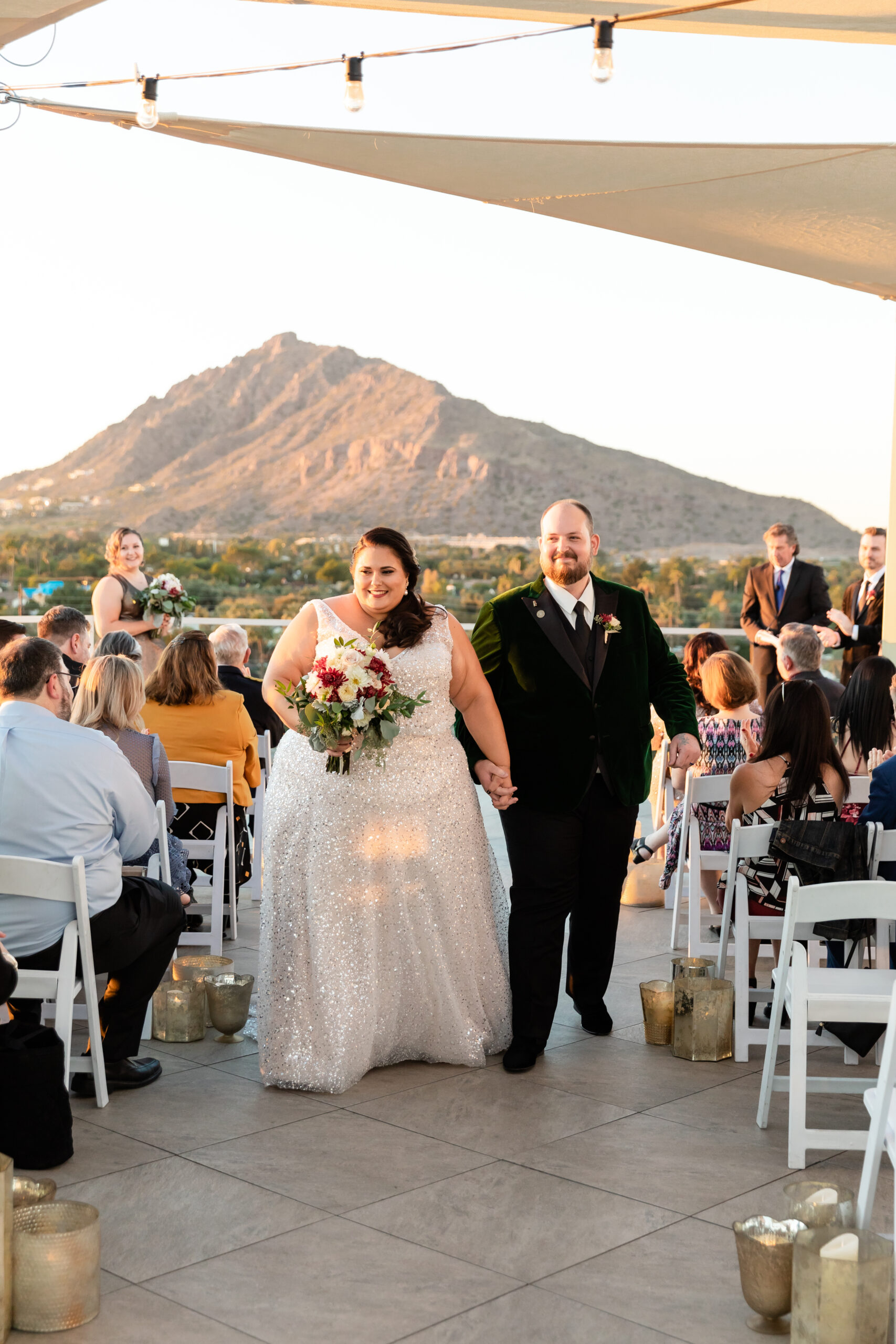 Hotel Valley Ho is a classic setting for the modern romantic. The hotel was first opened in 1956 and has been an icon of Old Town Scottsdale tourism for almost 70 years! You can enjoy areas such as the lush palm courtyard and panoramic skyline rooftop – where the couple had their sunset ceremony. For more information on weddings at Hotel Valley Ho, go to hotelvalleyho.com