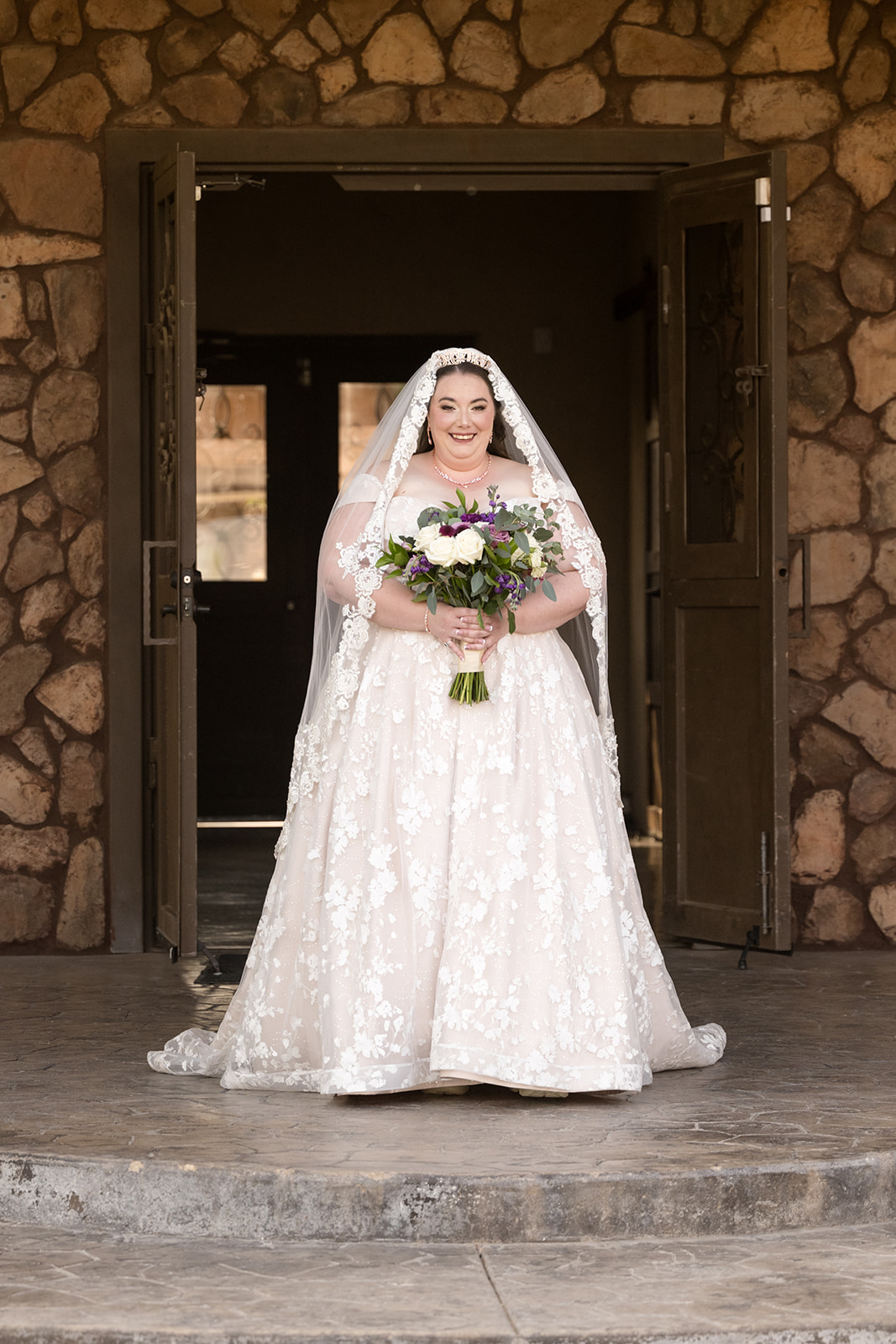 Sidney chose a romantic a-line wedding gown with a soft blush underlay and delicate 3D floral appliqué that added just the right amount of detail and femininity. The off-the-shoulder straps, sweetheart neckline, and flowy skirt gave her a timeless, fairy tale look that truly fit the magic of her wedding day. Her wedding dress moved gracefully and highlighted her natural beauty!