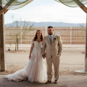 We’re so excited to feature our stunning Strut Bride, Sidney, who had a breathtaking spring wedding in March! Sidney and her husband James’s wedding was a beautiful celebration of their love, set against a stunning desert backdrop with its signature Superstition Mountain views. Sidney shopped at our Chandler, Arizona bridal store where she was styled by our incredible team to find the perfect romantic blush aline wedding dress gown for her big day!